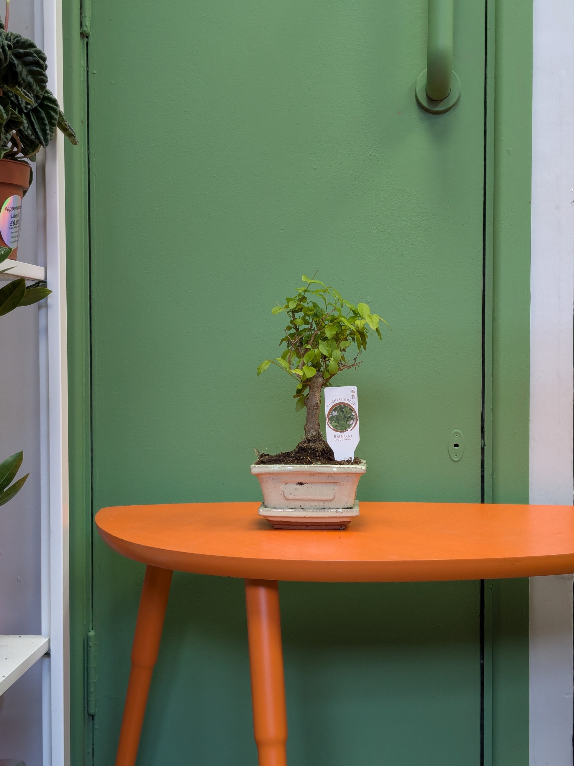 Considered beginner easy care Bonsai's, these guys are around 8 years old. They come with a tray for watering and must be kept consistently moist but not waterlogged. Prune often and place in bright indirect light.