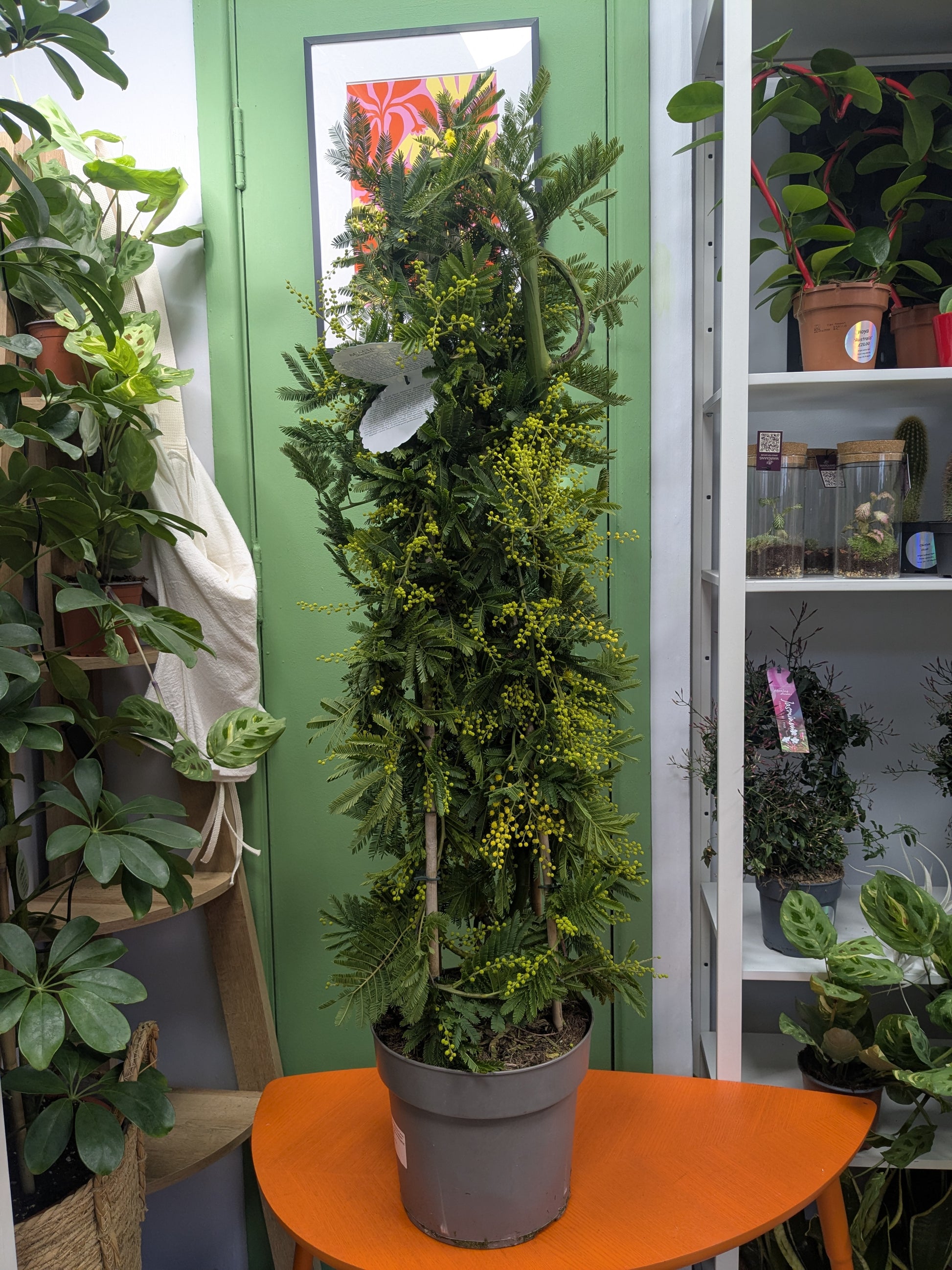 Brighten any room with our stunning Flowering Mimosa—a tall, elegant arrangement bursting with cheerful yellow blooms. Known for its delicate, feathery flowers and intoxicating fragrance, this botanical beauty brings warmth and joy to your space. Perfect for adding a splash of sunshine to your home or gifting someone special. Let the sweet, uplifting scent fill your surroundings with springtime magic.