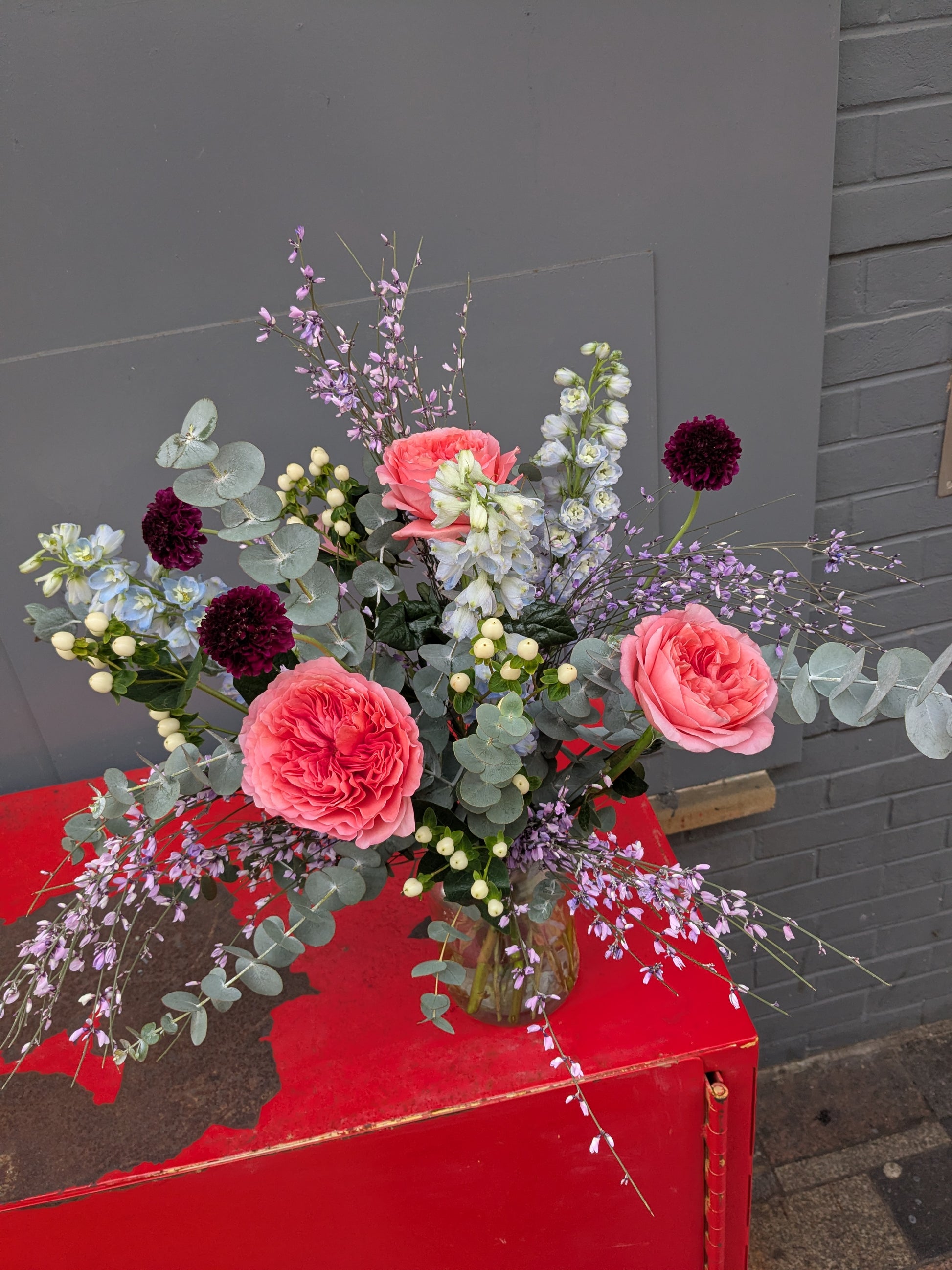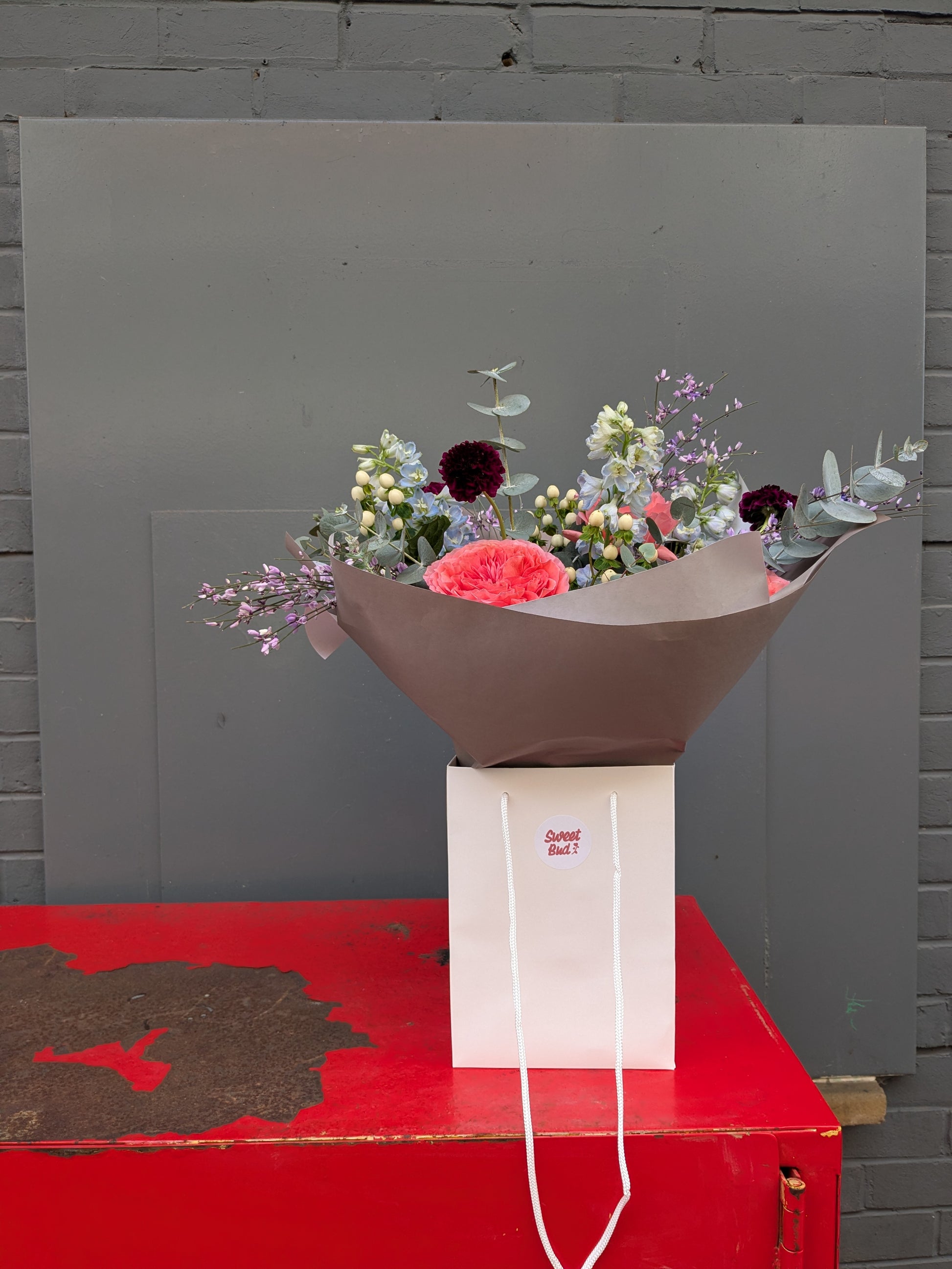 Elevate their rose game with our Pastel Romance Bouquet—a dreamy blend of premium Grade A roses paired with seasonal beauties like delphinium and broom in soft, romantic pastels. It's the perfect pick for rose lovers who crave a little extra flourish. Expect gorgeous fragrance and thoughtful sustainable wrapping with an aqua bubble pack to keep stems fresh.
